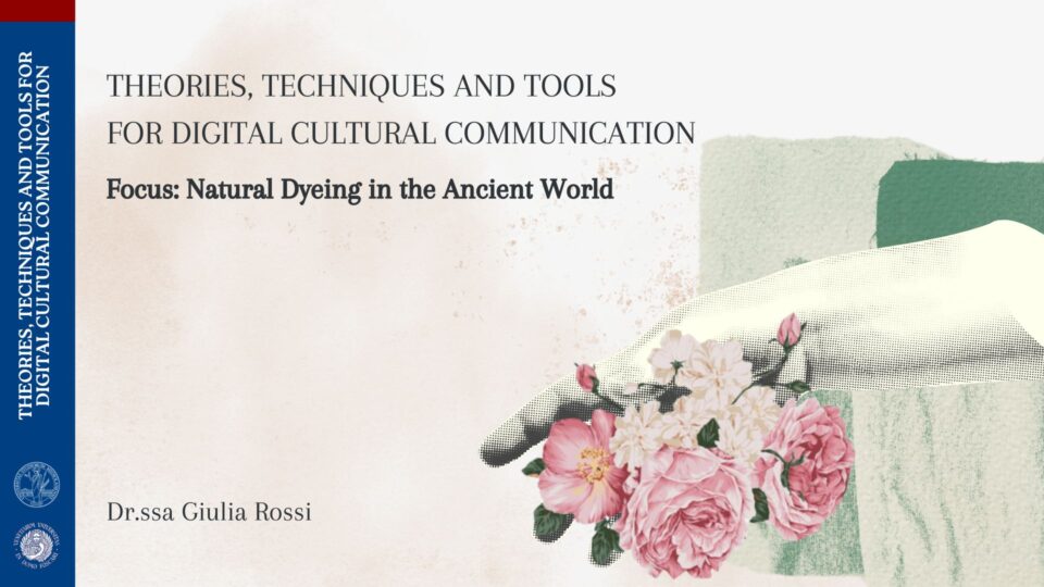 Each student will have 4/5 minutes to present their project created with the tools we have explored in previous lessons. You can decide to use only one tool, or use several in combination (WordPress with embed from Canva, from ArcGIS, etc.). The content of the project is personal, it can be dedicated to ancient dyeing techniques or something to your liking.